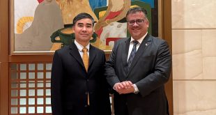 هانوي بحث سفير اليمن غير المقيم لدى جمهورية فيتنام الاشتراكية، الدكتور عادل باحميد، اليوم، مع نائب المدير العام لقسم الشرق الأوسط وأفريقيا بوزارة الخارجية الفيتنامية، انجوين انه دوك، مستجدات الأوضاع السياسية والأمنية في اليمن. واستعرض السفير باحميد، التطورات على الساحة اليمنية، خاصة الأحداث الأخيرة في المحافظات الشرقية، والقرارات التي اتخذها …
