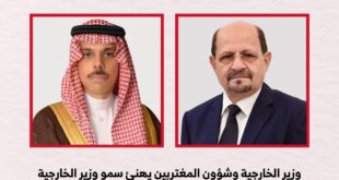 بعث معالي وزير الخارجية وشؤون المغتربين الدكتور شائع محسن الزنداني، برقية تهنئة إلى أخيه صاحب السمو الأمير فيصل بن فرحان بن عبدالله آل سعود، وزير خارجية المملكة العربية السعودية الشقيقة، وذلك بمناسبة اليوم الوطني للمملكة . وأعرب معالي الوزير في برقيته عن خالص التهاني وأصدق التمنيات للمملكة العربية السعودية قيادةً …