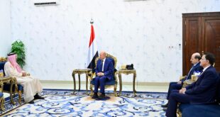 عدن – سبأنت: استقبل فخامة الرئيس الدكتور رشاد محمد العليمي، رئيس مجلس القيادة الرئاسي اليوم الخميس بقصر معاشيق، سفير مجلس التعاون لدول الخليج العربية، سرحان المنيخر. وتطرق اللقاء الى التطورات السياسية والاقتصادية، والتقدم المحرز في مسار الاصلاحات الشاملة، وانعكاساتها الملموسة على تحسن سعر صرف العملة الوطنية، والدعم الاقليمي والدولي …