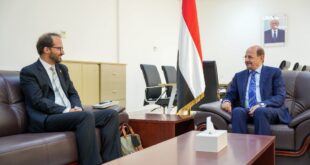 الرياض – سبأنت: استقبل فخامة الرئيس الدكتور رشاد محمد العليمي، رئيس مجلس القيادة الرئاسي، اليوم الخميس، القائم بأعمال سفارة الولايات المتحدة الامريكية لدى اليمن جوناثان بيتشا. وتناول اللقاء العلاقات الثنائية المتميزة بين البلدين الصديقين، وافاق تعزيزها، وتطويرها، اضافة الى مستجدات الاوضاع المحلية، والدعم الدولي المطلوب لجهود الاصلاحات الحكومية، وتعزيز موقف …