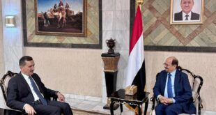 بحث معالي الدكتور شائع محسن الزنداني، وزير الخارجية وشؤون المغتربين، مع القائم بالأعمال في سفارة الجمهورية التركية لدى الجمهورية اليمنية، السيد أمر الله إيشلر، أوجه التعاون الثنائي بين البلدين، وسبل تعزيزها وتطويرها. وأكد معالي الوزير على عمق العلاقات التاريخية التي تجمع الجمهورية اليمنية وجمهورية تركيا، معرباً عن تقدير الحكومة اليمنية …