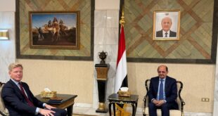 عدن – سبأنت بحث نائب وزير الخارجية وشؤون المغتربين، مصطفى نعمان، اليوم، في العاصمة المؤقتة عدن، مدير مكتب تنسيق الشؤون الإنسانية التابع للأمم المتحدة (الأوتشا)، سعيد حرسي، سبل تطوير التعاون القائم، وتعزيز الدعم الإنساني المقدم من الأمم المتحدة للشعب اليمني. وبحث الجانبان، الآثار المترتبة على اغلاق المليشيات الحوثية لمكاتب الامم …