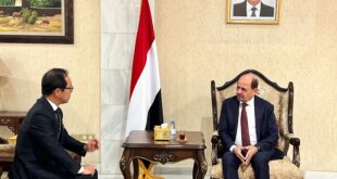 RIYADH – SABA The Minister of Foreign Affairs and Expatriates, Dr. Shaya Zindani met Wednesday with the European Union Ambassador to Yemen, Patrick Simonnet. Minister Zindani expressed his gratitude to the European Union for the support announced during the Maritime Security Partnership Conference in Yemen, emphasizing the importance of EU …