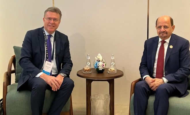 التقى نائب رئيس الوزراء وزير الخارجية عبدالملك المخلافي ،اليوم، سفيرة مملكة هولندا الصديقة لدى بلادنا أرما ماري خوسيه فان ديورن. جرى خلال اللقاء استعراض العلاقات الثنائية بين البلدين الصديقين واوجه تعزيزها وتطويرها . وحمل وزير الخارجية السفيرة أرما نقل تهنئته إلى وزير خارجية هولندا الجديد هالبي زيسترا بمناسبة توليه المنصب …
