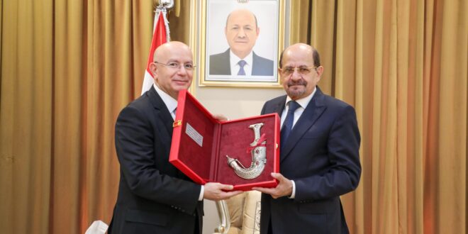 أستقبل وزير الخارجية وشؤون المغتربين الدكتور شائع محسن الزنداني، اليوم، رئيس دائرة الشرق الأوسط وشمال إفريقيا في مؤسسة كونراد اديناور الألمانية الدكتور توماس فولك. جرى خلال اللقاء مناقشة التعاون بين بلادنا ومؤسسة كونراد اديناور، خاصة ما يتصل بتعزيز العلاقات مع المانيا وأنشطة المؤسسة في تعزيز قيم العدالة والديمقراطية وحكم القانون …