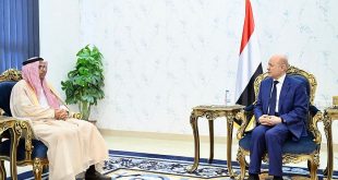 ADEN-SABA His Excellency President Rashad al-Alimi, Chairman of the Presidential Leadership Council, met with Ambassador of the Gulf Cooperation Council (GCC), Sarhan Al-Muneekhr, to discuss political and economic developments in Yemen, progress in comprehensive reforms and their positive impact on Yemen’s currency exchange rate, regional and international support needed to …
