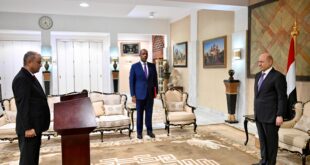 RIYADH – SABA Salem Saleh bin Braik was sworn in today, Sunday, before His Excellency Dr. Rashad al-Alimi, Chairman of the Presidential Leadership Council (PLC) on the occasion of his appointment as Prime Minister. Following the ceremonies, President al-Alimi congratulated bin Braik for gaining the PLC’s trust, highly praising the …
